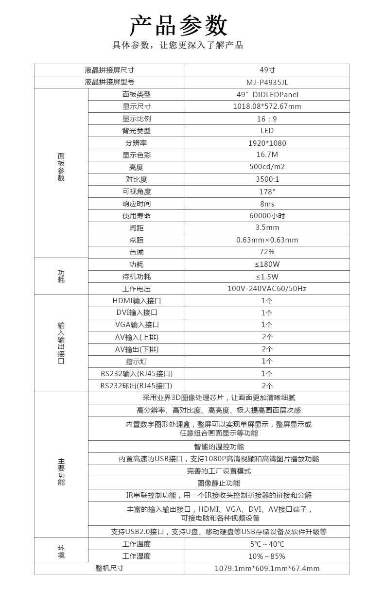 【美佳愛-4k液晶拼接屏生產廠家電話400-997-9971】京東方49寸液晶拼接屏-拼縫3.5mm產品通過ISO9001_3C_節能認證等30多項認證,主營LG/京東方/三星大屏幕電視墻,其尺寸有32寸40寸43寸46寸49寸55寸65寸75寸液晶拼接單元,也有曲面,弧形,柔性,無縫LED顯示屏,顯示器,超窄邊高清監視器,提供企業展廳展示,KTV,酒吧,會議室,視頻監控系統解決方案設計-報價-安裝施工-售后超窄邊維修等服務