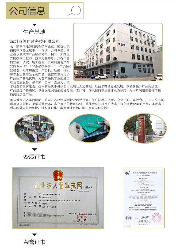 【深圳市美佳愛-液晶廣告機,觸摸一體機生產廠家電話400-997-9971】65寸紅外觸摸一體機(電腦/壁掛)產品通過ISO9001_3C認證,主營多點紅外/電容式觸摸屏一體機,觸控查詢一體機,其他尺寸18.5寸21寸24寸27寸32寸40寸43寸46寸49寸55寸65寸75寸86寸98寸100寸多功能多媒體教學會議一體機,戶外立式/壁掛雙面廣告機,單機版/安卓網絡廣告機 豎屏樓宇電梯廣告機,長條型屏,工業級工控電腦觸摸顯示器,大尺寸觸摸屏查詢系統,商顯平板電腦電視,提供報價價格,安裝施工,售后維修等