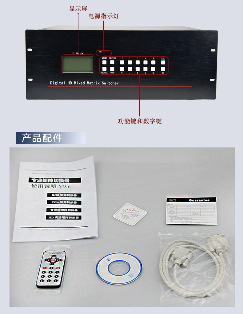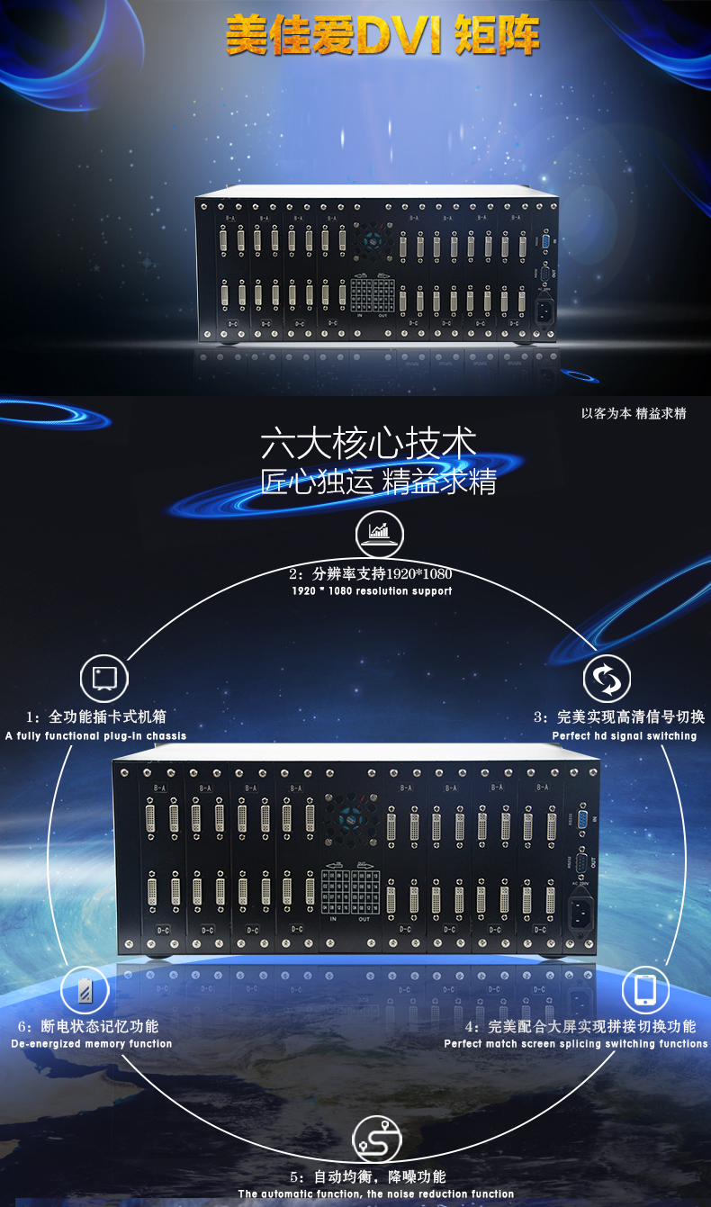 DVI高清全數(shù)字矩陣切換器, 所有端口支持藍(lán)光DVD(支持HDCP);輸入輸出自動(dòng)均衡,輸入加輸出傳輸距離大于40米(不需配帶芯片的DVI線);鋁拉絲面板,帶藍(lán)光液晶顯示屏顯示操作狀態(tài);帶串口控制,可選配網(wǎng)口;所有輸入端口支持現(xiàn)場(chǎng)寫EDID,所有輸出端口可讀回EDID。