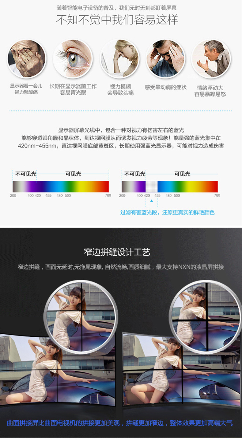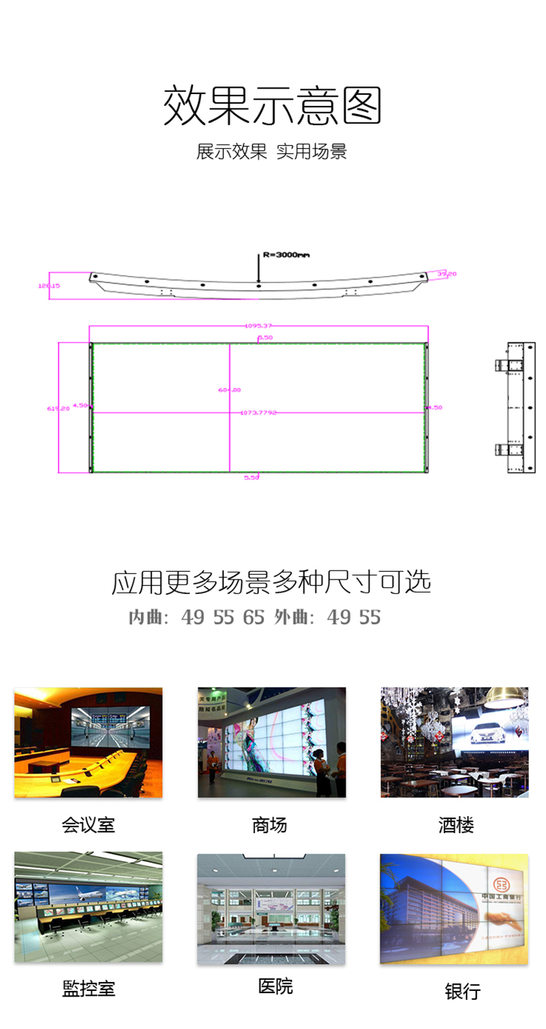 【美佳愛-4k液晶拼接屏生產(chǎn)廠家電話400-997-9971】高清曲面液晶拼接屏產(chǎn)品通過ISO9001_3C_節(jié)能認(rèn)證等30多項(xiàng)認(rèn)證,主營LG/京東方/三星大屏幕電視墻,其尺寸有32寸40寸43寸46寸49寸55寸65寸75寸液晶拼接單元,也有曲面,弧形,柔性,無縫LED顯示屏,顯示器,超窄邊高清監(jiān)視器,提供企業(yè)展廳展示,KTV,酒吧,會(huì)議室,視頻監(jiān)控系統(tǒng)解決方案設(shè)計(jì)-報(bào)價(jià)-安裝施工-售后超窄邊維修等服務(wù)