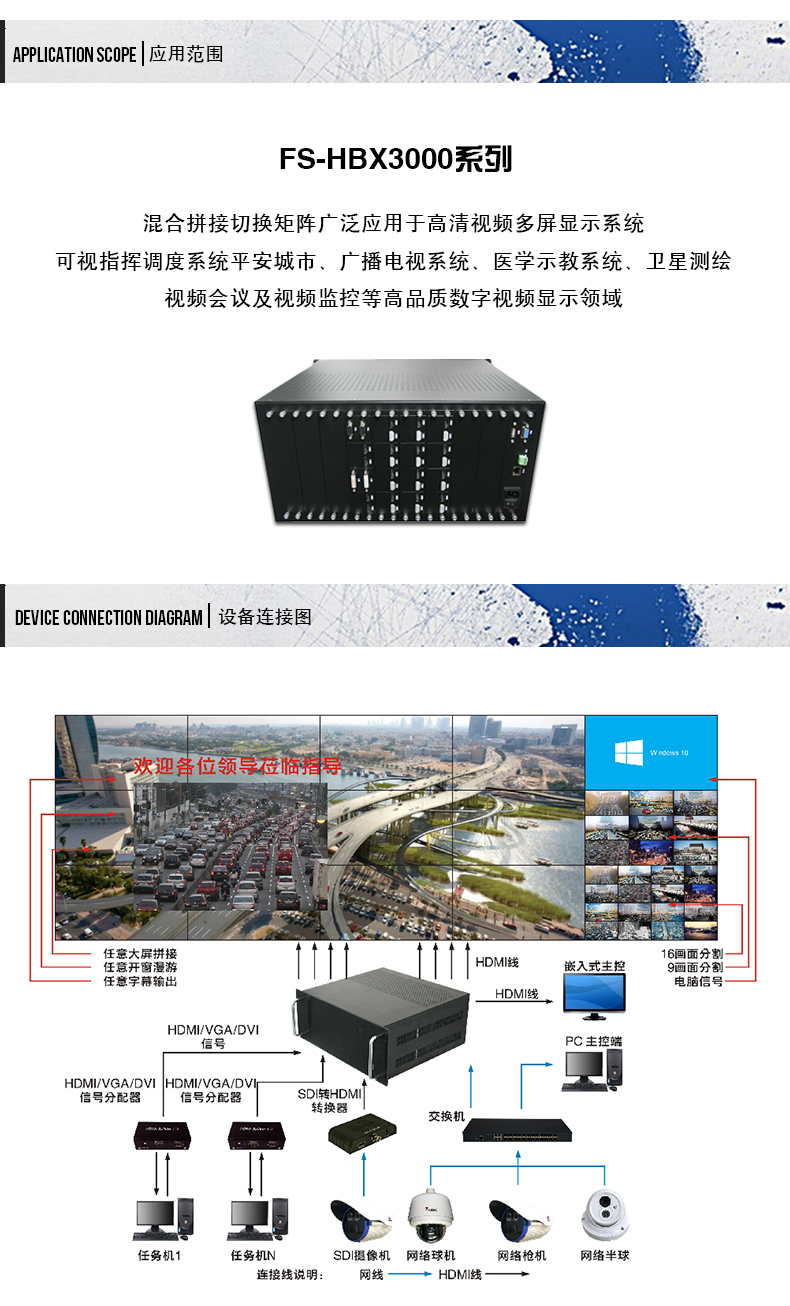 8000系列多屏幕拼接處理器是一臺(tái)純硬件架構(gòu)、無操作系統(tǒng)的高性能視頻圖像處理工作站,可廣泛應(yīng)用于安防監(jiān)控、展覽展示、軍事指揮、教育科研、政府公告、商業(yè)顯示等行業(yè)。